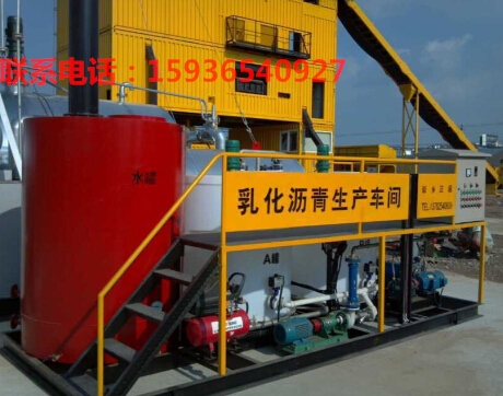 a.移动式乳化沥青设备是将乳化剂掺配装置、乳化机、沥青泵、控制系统等固定在一个专用的托式底盘上。由于可以随时转移生产地点,它适用于工程分散、用量少、频繁移动的施工现场乳化沥青的制备。