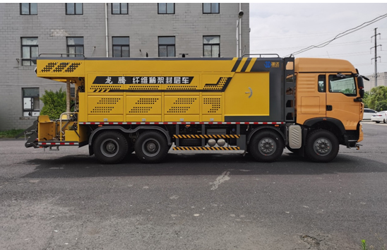 纤维稀浆封层车满足了稀浆混合料拌和时间短、成型速度快、摊铺厚度薄等特殊工况,实现了施工快、造价低、用途广、能耗低等要求。
