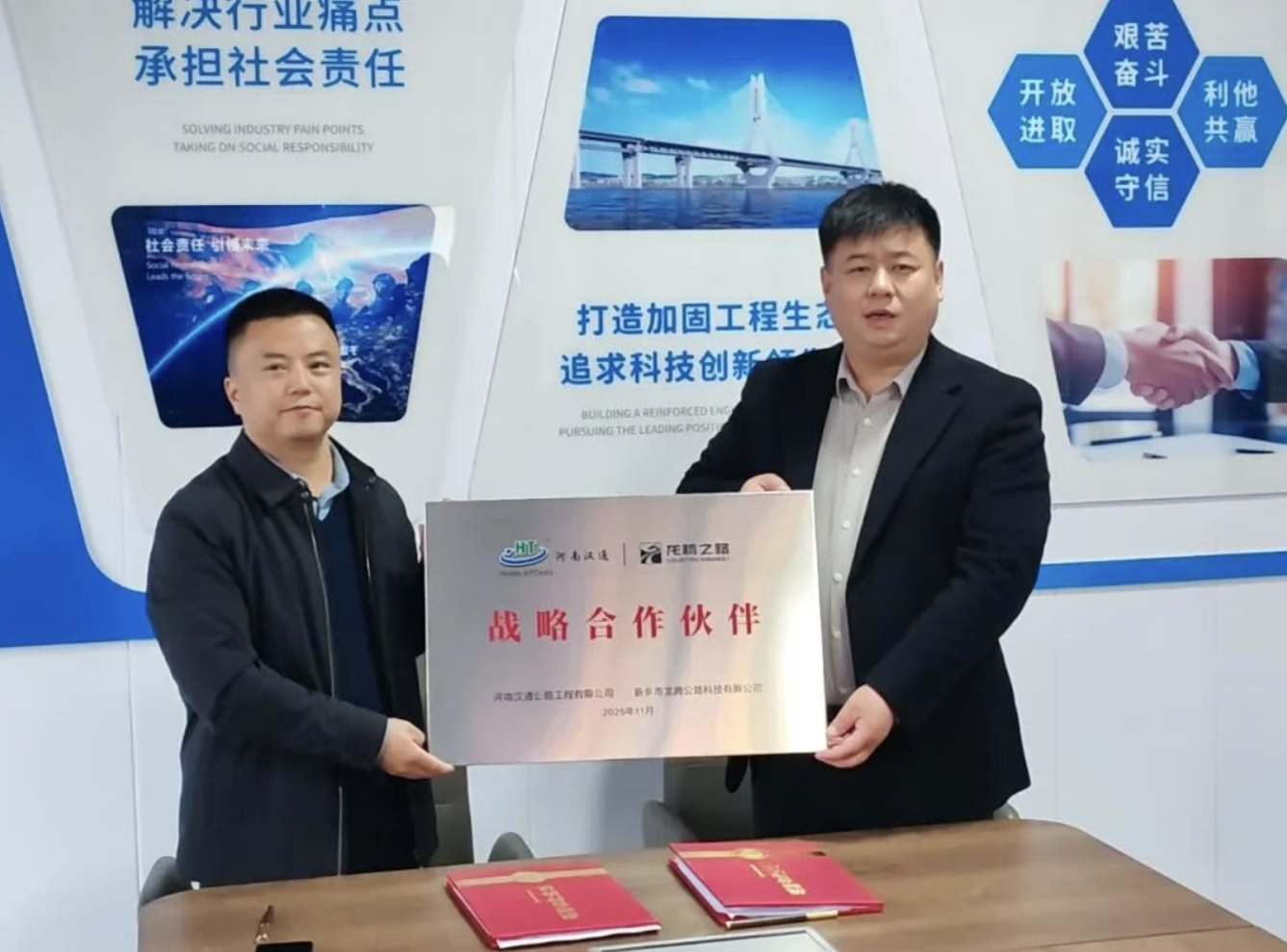 2025 年 11 月 7 日,公路建养行业传来重磅消息 —— 新乡市龙腾公路科技有限公司(以下简称 “龙腾公路科技”)与河南汉通建设工程有限公司(以下简称 “河南汉通”)在河南汉通总部隆重举行战略合作签约仪式。此次合作,不仅是两家企业发展历程中的重要里程碑,更将为我国公路建养领域的技术革新与产业升级注入强劲动力。